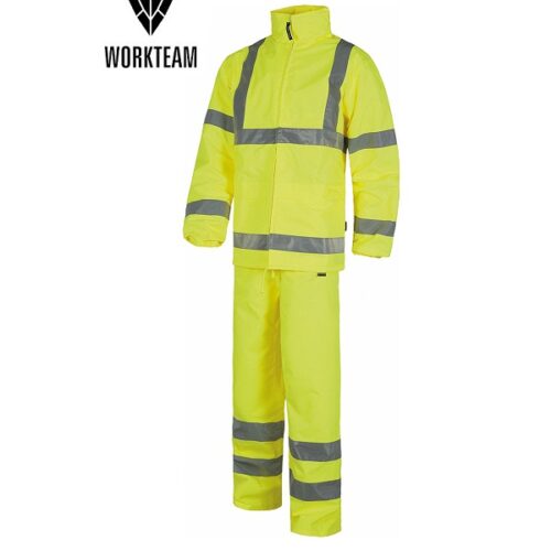 Completo antipioggia alta visibilità della Workteam perfetto da indossare sul posto di lavoro. Personalizzabile con il nome della tua azienda.